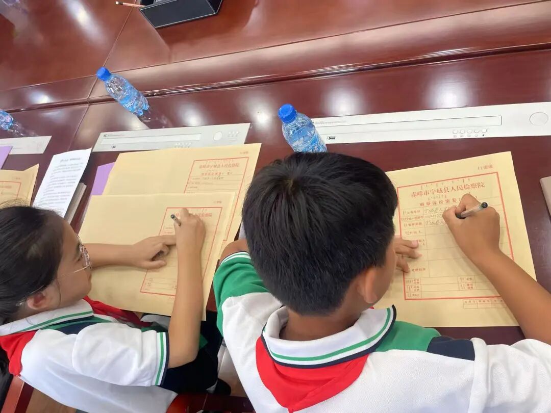 活动伊始,在检察官的引导下,同学们签署了保密承诺书,瞬间进入了办案状态。随后,一桩名为“冲动的代价”的案例卷宗被郑重发布。孩子们不再是台下被动的听众,而是即将亲历案件办理全过程的检察官、犯罪嫌疑人和被害人。