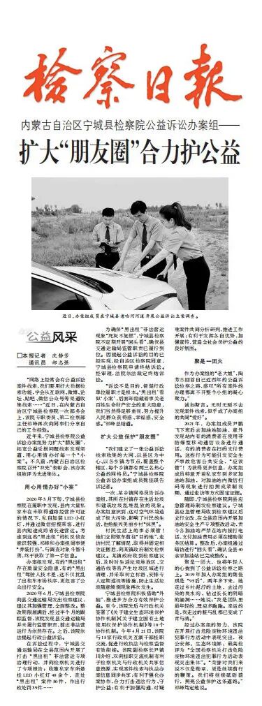 近年来,宁城县检察院公益诉讼办案组努力扩大“朋友圈”,拓宽公益受损问题线索发现渠道,用心用情办好每一个“小案”。不久前,内蒙古自治区检察院召开“双先”表彰会,该办案组被评为先进集体。