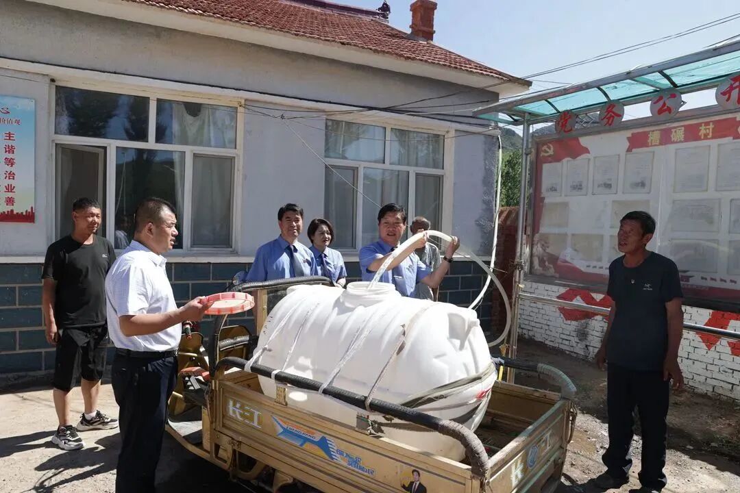 2020年在脱贫攻坚的关键时刻,宁城县检察院向槽碾村派出驻村工作队,在村脱贫攻坚工作中发挥了重要作用。驻村工作期间,工作人员守岗尽责,尊重民意,俯下身子倾听民意,经常深入各家各户了解村民在脱贫致富路上所遇到的难题,协同政府解决群众急难愁盼的实际问题,在落实上求真务实,惠民利民,使该村顺利的完成了脱贫攻坚的各项任务。驻村工作人员在了解到村部没有水井,常年到村民家取水非常不方便的问题后,立即向检察院领导汇报请示解决村部用水问题,检察院领导高度重视,在单位经费紧张的情况下,及时拨付专项资金为槽碾村部打饮水井1眼,并配齐电源、水泵、管道等设施,同时还为村里提供了电脑、打印机等办公设备,改善村里的办公条件。今年槽碾村遇到了50年不遇的严重干旱,自2022年7月至今未降透雨,进入6月份后,各机电井同时开闸,解决部分农田灌溉,由于该村地处山区,地下含水量少,水位急剧下降,到6月10日前后,村里所有老水井全部干枯,只有部分村民院中深水井有水,全村600多人,2500头只牲畜严重缺水。而宁城县检察院当时出资为村部打的饮水井,如今排上了大用场。如今村民每天到村委的这口“救命井”免费取水,村委会派专人负责为村民取水提供方便,解决了群众饮水的燃眉之急。会上,镇驻村第一书记和村党支部书记代表槽碾村全体村民为宁城县检察院送上“驻村帮扶办实事,情系群众解民忧”的锦旗。并表示:“槽碾村全体村民永远不会忘记宁城县检察院的工作实绩,如果没有这眼好井,我村人畜饮水将会出现严重危机,将给人民群众的生命财产造成严重损失,槽碾村的群众齐声赞叹共产党好,检察院的领导同志们好,汩汩井水润民心,吃水不忘挖井人,我们会永远记住检察院给我们的这笔宝贵财富”。