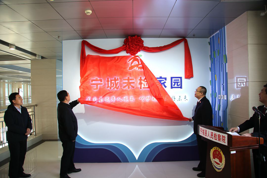 为切实做好青少年法治教育工作,推动未成年人司法保护工作深入发展,3月7日,宁城县检察院建设完成的未成年人法治教育基地——“宁城未检家园”正式揭牌并投入使用。县委副书记、政府县长张海轩,县检察院党组书记、检察长郭向东为基地揭牌,县政协副主席魏利天、县教育局局长裴宏伟、团县委书记孝玲玲、县关工委主任刘国军、县委政法委副书记程东飞、县法院副院长张亚军、县公安局副局长苏宝军、县宣传部副部长陈浩、县司法局副局长候俊峰出席仪式。