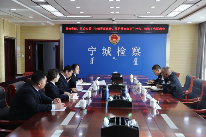 近日,宁城县检察院、宁城县公安局联合“化解矛盾风险、维护社会稳定”控告、信访工作联席会,宁城县检察院、宁城县公安局相关部门负责同志参加会议。
